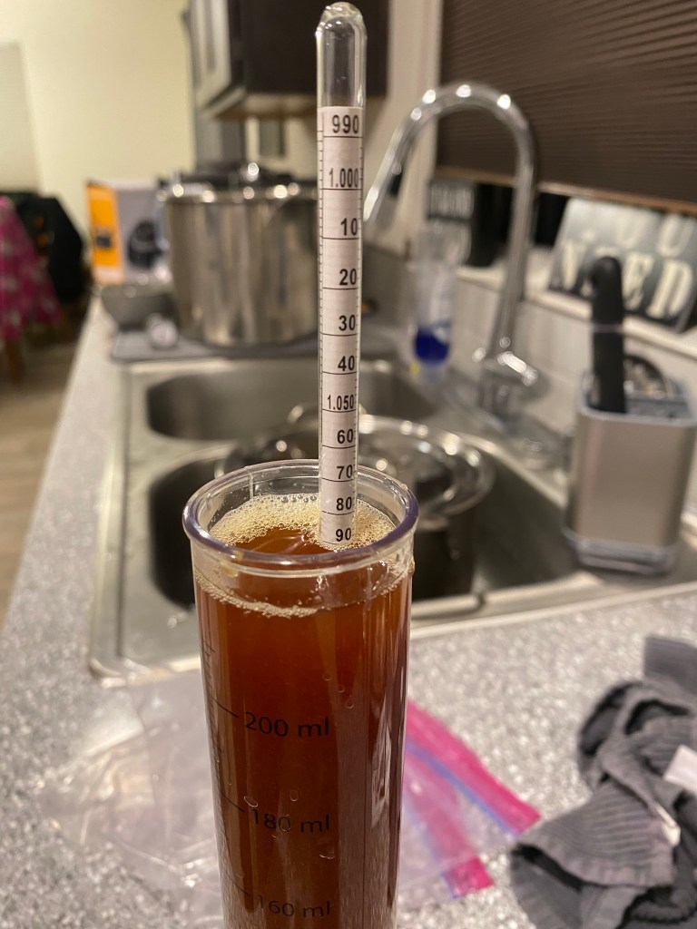 This is when I took my final gravity (FG) reading which was a whopping 1.028.