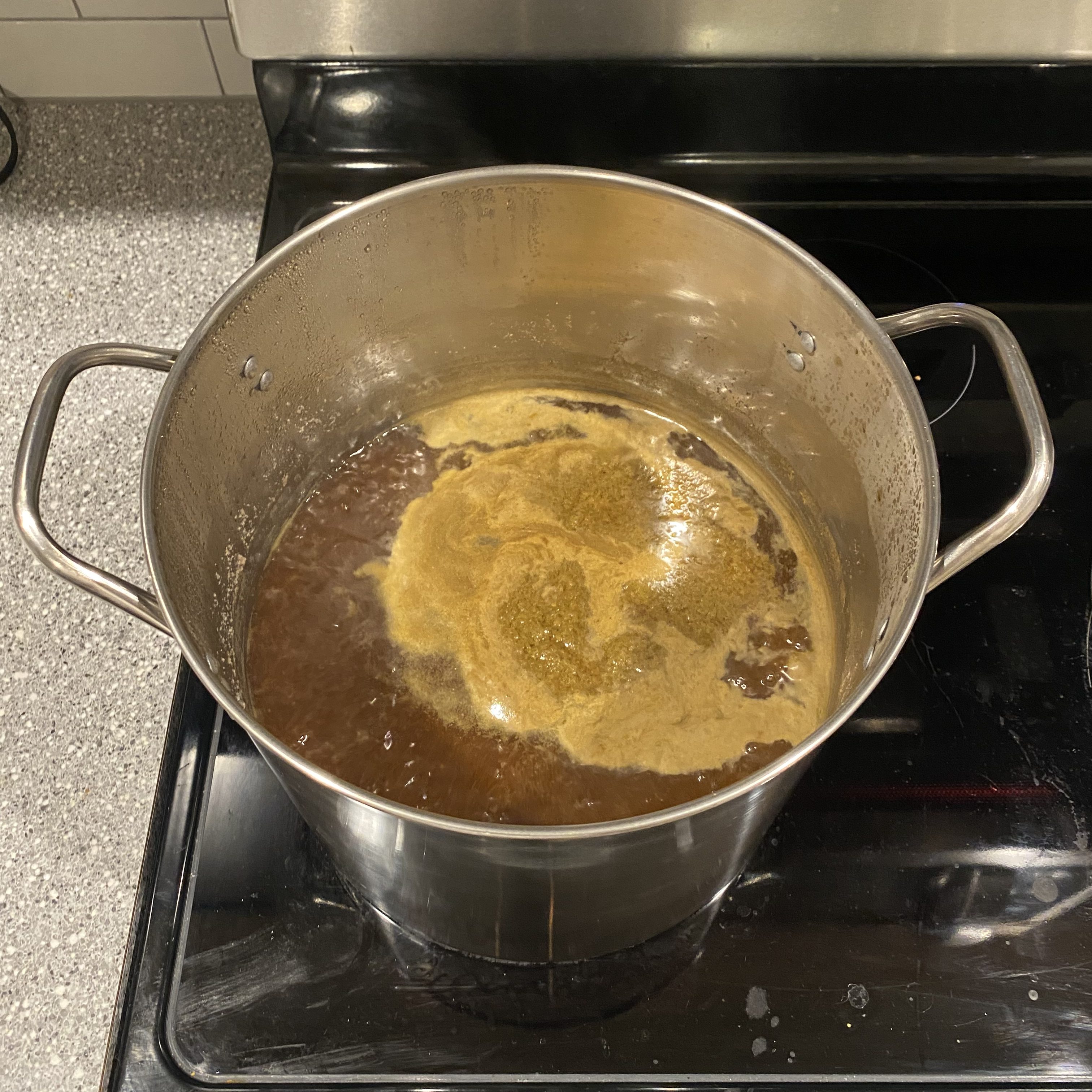 I stirred this into the boiling water and this became into my beautiful wort that I created.