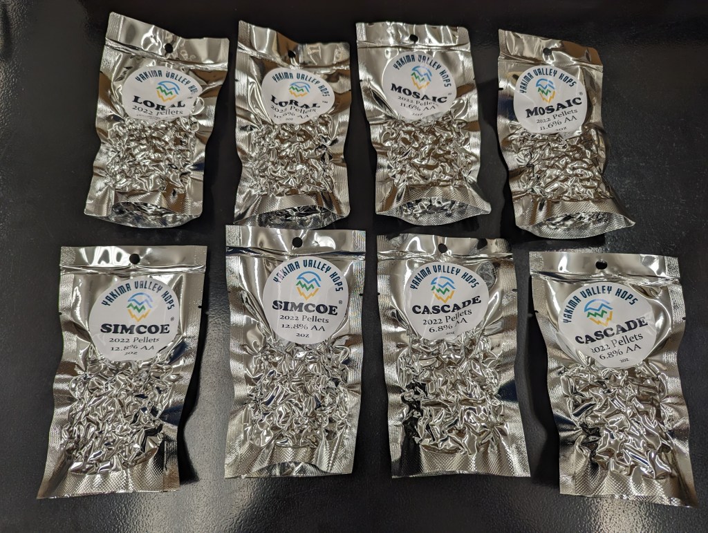 One thing you might notice about this recipe is that the “amount” column for all the hop additions are left as question marks. While discussing the idea I had for my practicum with CWU Craft Brewing faculty member Cole Provence over a few pints he convinced me to leave a little mystery in the recipe so that I’d still have to use some sensory analysis skills to try to figure out the missing pieces. Brainstorming is best done over beer, but decisions should be made the next morning, and the next morning I still like the idea, so I asked Brian to remove this information from the spreadsheet, adding a little bit of an extra challenge. At the least I still had which hops would be used in the appropriate step of the brewing process.