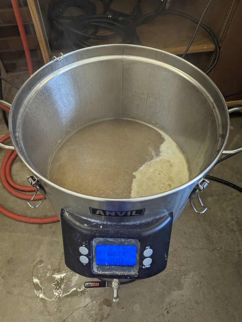 One thing I like to do whenever I’m brewing is to keep track of what I’m doing with as detailed notes as possible. I put together a recipe in BrewFather, an app that’s worked really well for me, just so I wouldn’t have to use my terrible memory to recall what I’d done. It also lets me keep track of any changes I make along the way, purposeful or not, for example I wasn’t able to get ahold of Ahtanum hops, so I swapped them for Cascade, which was a varietal used in Field 41 in the past.