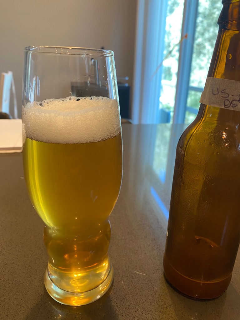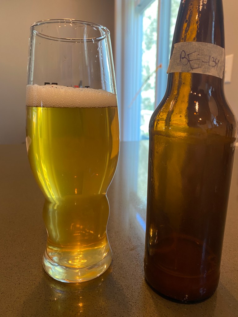 This set me back because I had to wait for carbonation to build, so although my tank was refilled I wasn’t able to start bottling yet. Despite only having 24 hours until triangle testing, I had to wait. I had to head to work, so I decided to check on it that evening when I got home, and if it wasn’t ready I’d just bottle in the morning. Luckily, 7 hours later when I got home, upon tasting, it seemed ready, so I got to bottling. Ideally I think I would’ve given it another week to condition, but I unfortunately didn’t have the time, and you can see the unclarified result in the next photo.