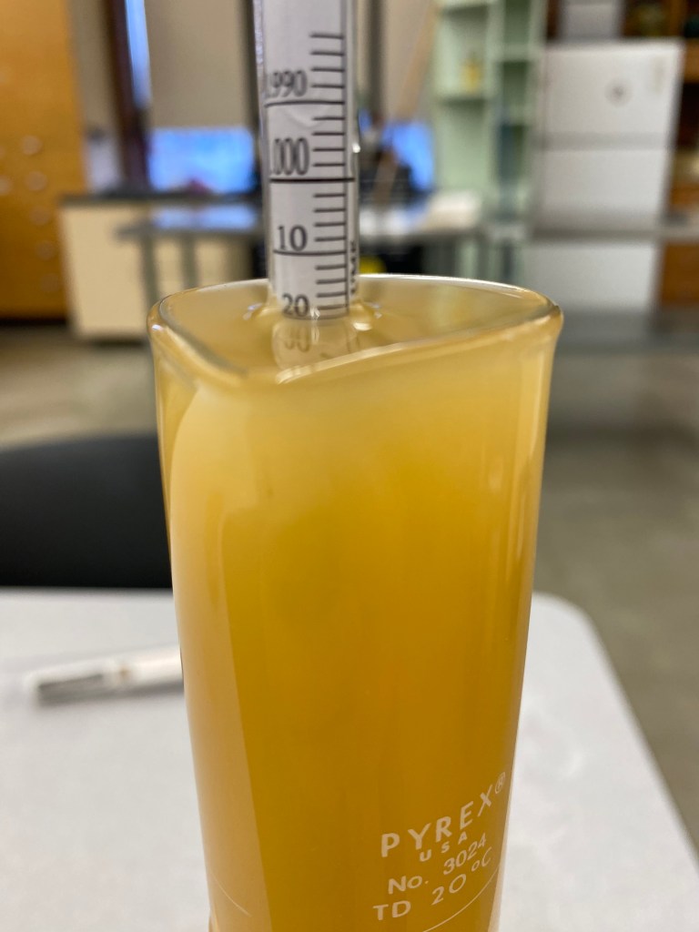 - Brewing taking OG (original gravity) and FG (final gravity) readings